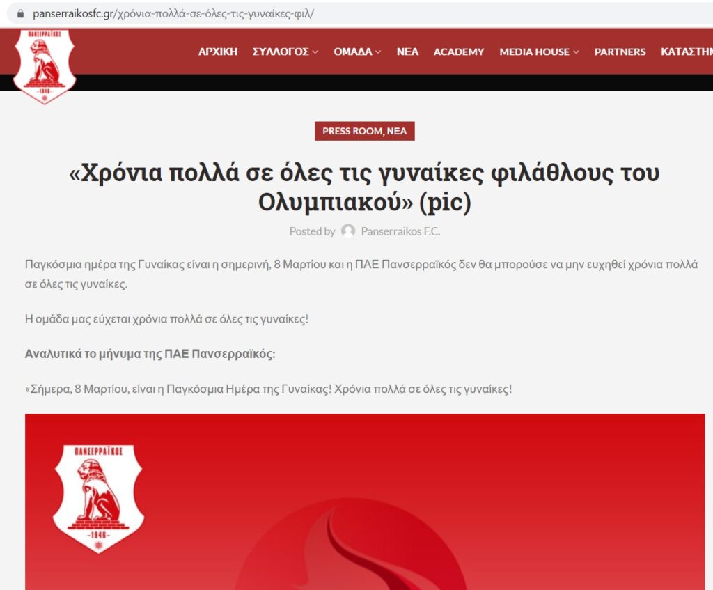 Πανσερραϊκος : Η γκάφα με τις «γυναίκες φιλάθλους του Ολυμπιακού»!