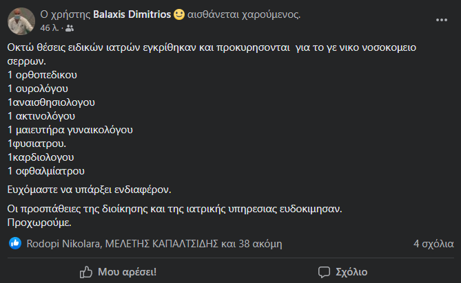 Οποτε αντι να πανηγυρίζετε για την προκήρυξη θέσεων που δεν θα καλυφθούν . Ασχοληθείτε να βρείτε τι φταίει και οι γιατροι αποφεύγουν το νοσοκομείο Σερρών