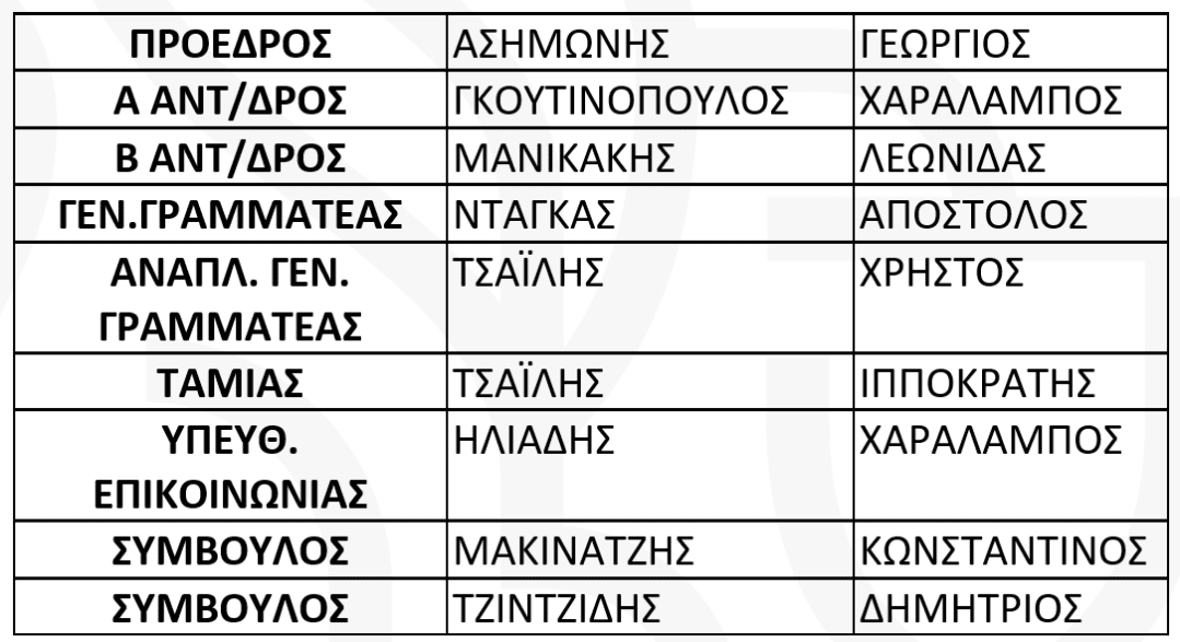 Το νέο, 9μελές Δ.Σ. διαμορφώθηκε ως εξής: